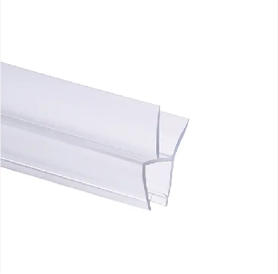 Ущільнювач для душових кабін і гідромасажних боксів U-02 виконан із ПВХ, прозорий з блакитним відтінком, універсальний для розсувної на роликах або коліщатках для душової кабінки та розстібної (на петлях) системи скляних дверей, гнучкий з великим запасом міцності , і не втрачає колір довгий час. Встановлюється ущільнювач по контуру скляних дверей душової кабінки, є ніби продовженням скла, має кут примикання 180 градусів до площини підлоги, застосовується для герметизації примикань, закриває собою щілини між скляними дверима та підлогою сантехнічного вузла.